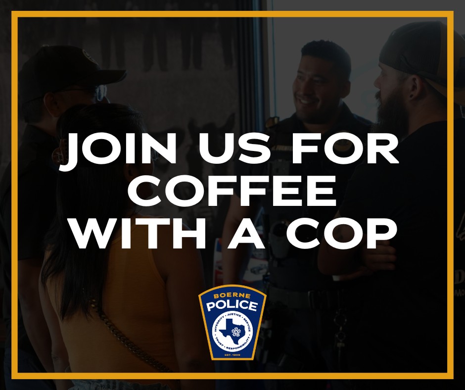 Nothing brings people together like good ol’ American coffee! The Boerne Police Department will team up with their friends at the Kendall County Sheriff's Office and Fair Oaks Ranch Police Department for a morning of conversation and community at Black Rifle Coffee on Wednesday, October 1st, 2025, from 9 AM to 11 AM. A huge ... Read more