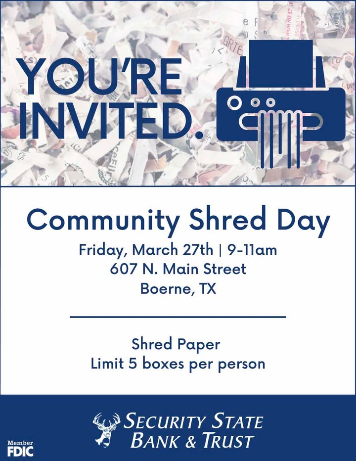 Location: Security State Bank & Trust – 607 N. Main St. Boerne, TX 78006