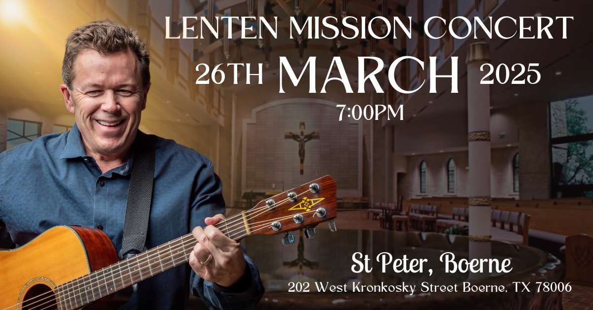 Head to St. Peter for a powerful and uplifting Lenten Mission Concert with David Kauffman, where song and story come together to bring healing, hope, and renewal during this sacred season.