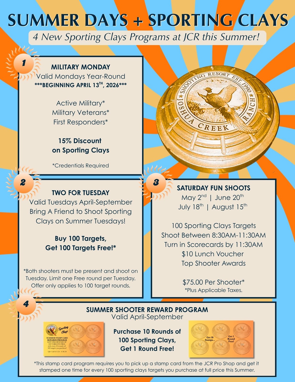 Jul 13 Summer Shooter Reward Program at Joshua Creek Ranch All Day Joshua Creek Ranch 132 Cravey Rd, Boerne Event Details Get Directions