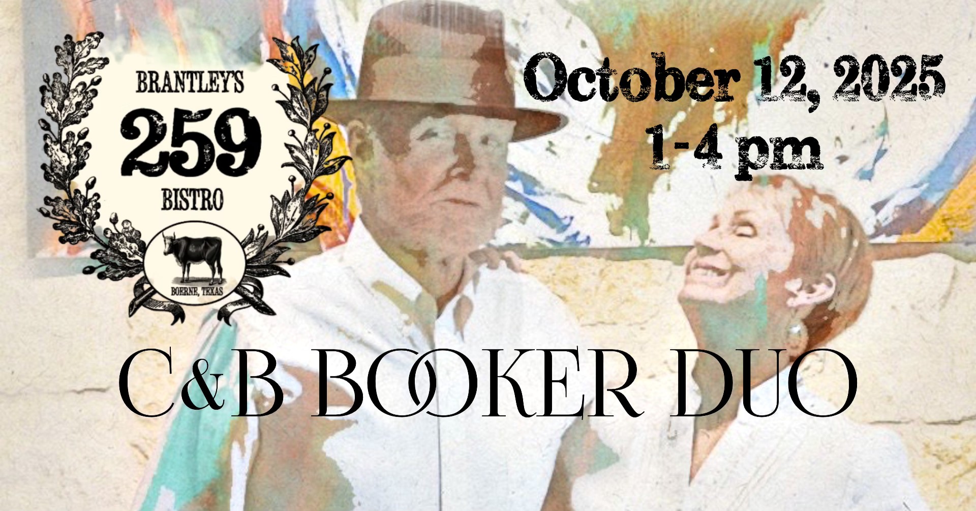 The C & B Booker Duo will appear Sunday 12 October at the beautiful open-air courtyard at 259 Brantley's Bistro & Bar, in the heart of Boerne's Historical District. Singer / song writers Chris & Bill will play music they have written and songs they love. They find joy in sharing with all who will ... Read more