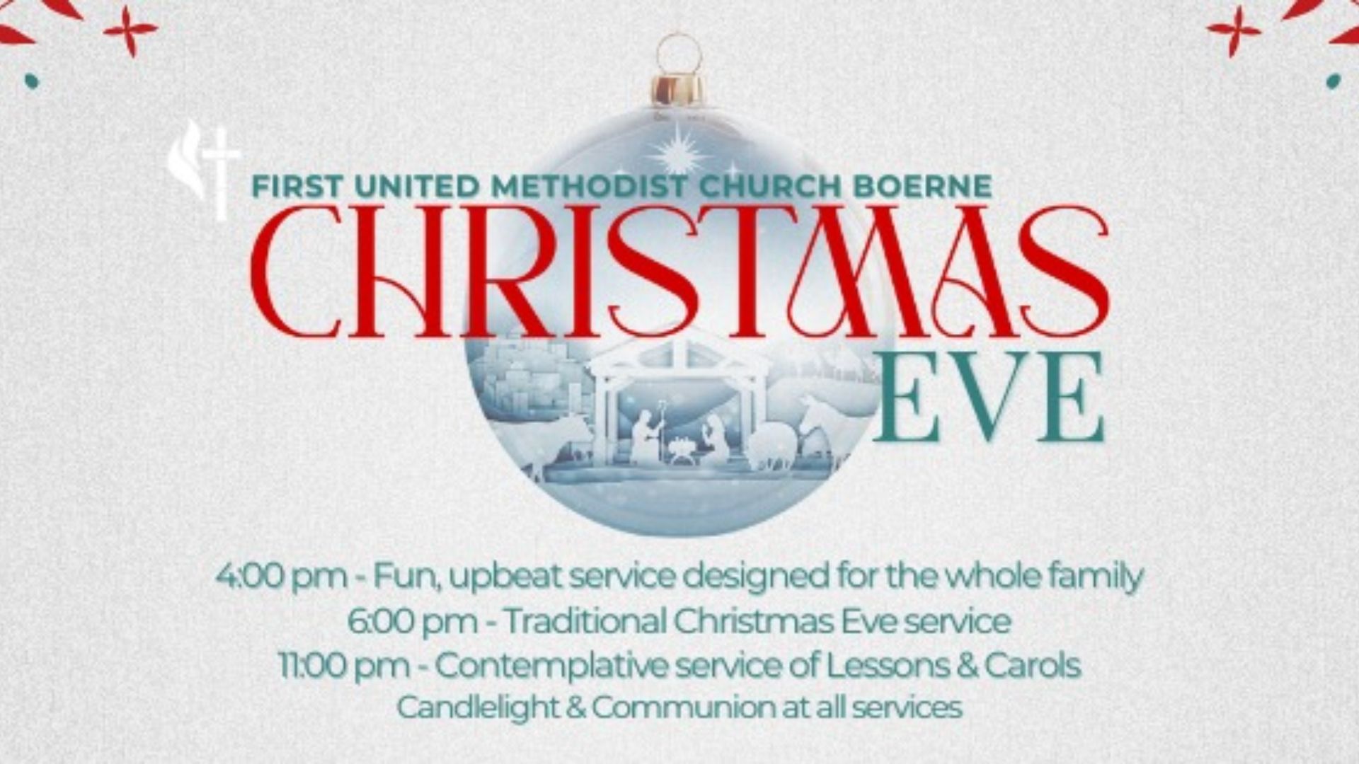 Dec 24 Christmas Eve Lessons & Carols at FUMC 11:00 pm - 11:30 pm First United Methodist Church Boerne 205 James St, Boerne Event Details Get Directions